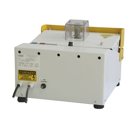Seladora com opção de funcionamento semiautomático e regulagem de velocidade das batidas da mandíbula ou funcionamento manual por meio do acionamento por pedal elétrico.